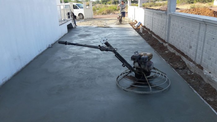 Saha betonları, vibrobeton mastarı ile sıkıştırılıp, oluşturulan yüzey helikopter yardımıyla perdah uygulaması yapılarak, düzgün ve sorunsuz bir yüzey elde edilmesi ile olur. Bu sayede daha kullanışlı bir yüzey ortaya çıkar. Amaca uygun yüzeyler elde edebilmek için uygulama esnasında yüzey sertleştiriciler ve çeşitli kür malzemeler kullanılır. Üzerine yeniden bir uygulama yapmaya gerek kalmaz. Az maliyetli ama çok kullanışlı ve sağlam bir yüzeye ulaşılır.